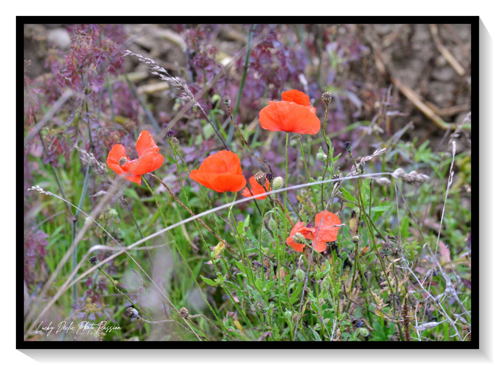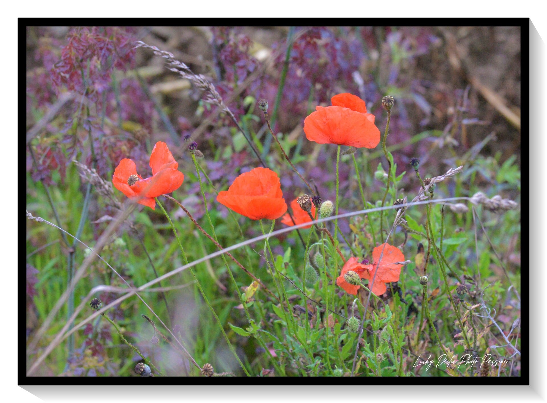 Et de l'autre, mes petits préférés : les Coquelicots. Eux, ce sont les rebelles ! Avec leurs pétales tout froissés comme du papier de soie et leur allure de saltimbanques, ils ne tiennent pas en place. Un coup de vent et hop, ils dansent ! Ils sont fragiles, sauvages, et ils s'en fichent pas mal de la discipline.